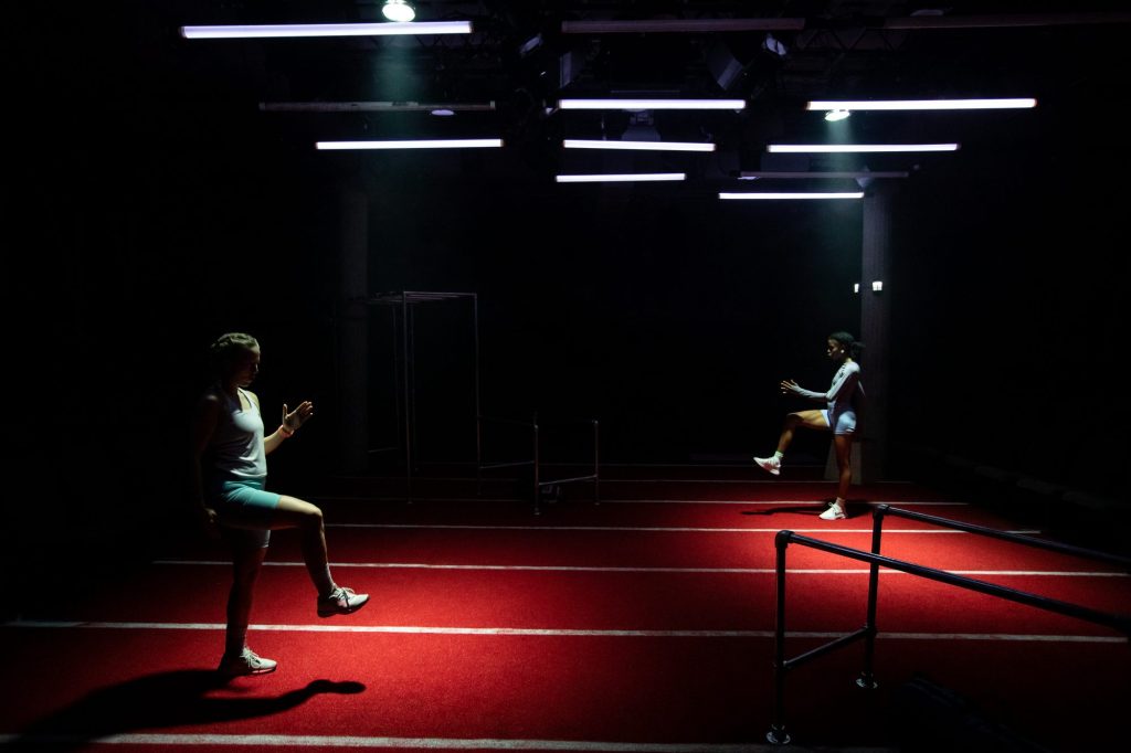 Yet constant motion and activity (felt more immediately in the theatre, where there is little chance for actors to catch their breath) is very deliberate part of Fair Play’s dramaturgy. What most people see of athletics is only duration of the race itself. (In the case of the 800m, that is about two minutes.) The years of training it took to get there are an offstage event. Similarly, when decisions are taken over what testosterone levels to allow in women’s sport, we only see the cold courtroom drama – or just the resulting headlines. Invisible are the years of hard graft preceding it that are invalidated. This is the asymmetry that Fair Play sets out to correct.