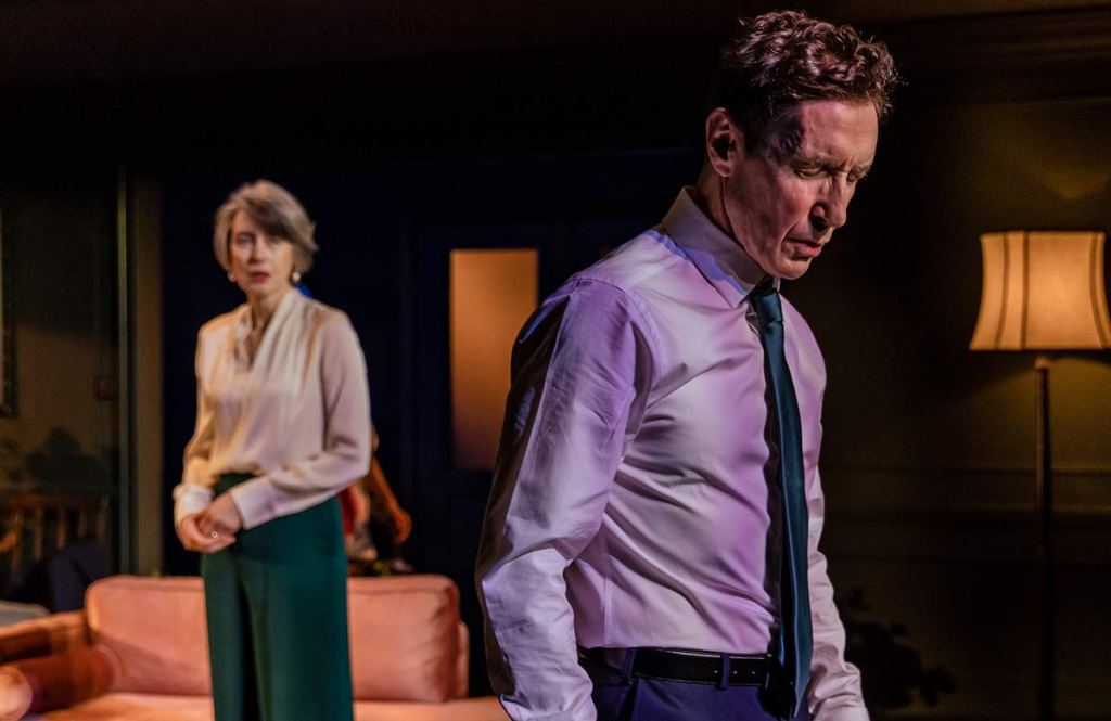 But what interpersonal drama it is. John Heffernan and Katherine Parkinson are brilliantly cast as the play’s famous lovers in denial. Neither of whom can summon the courage to make the first move, shielding their interest in the armour of mutual dislike. They tie themselves in Gordian knots, philosophically opposing marriage in the strongest terms. Benedick in particular disavows the notion of marriage as anathema to his fiercely independent spirit; to marry would be to submit to state of perpetual boredom that means you ‘sigh away Sundays’ in lieu of meaningful entertainment. Yet his obsession with not marrying is apophatic, pointing to the deep desires he is not yet ready to admit. He would only ever countenance marriage if a woman managed to have ‘all graces’ – ‘fair’, ‘wise’, ‘virtuous’, ‘noble’, ‘of good discourse’. (Here, Heffernan’s reading of ‘and her hair shall be of what colour it please God’ alters the original meaning that it may not be dyed to make Benedick seem more endearing; as long as she has all such qualities, he says, her hair colour is irrelevant.) Benedick constructs an elaborately reasoned logical house of cards for why no woman would ever be fit to marry him, yet it comes tumbling down with the play’s most touching romantic cadence, as Benedick realises that there is one woman who fulfils, even transcends, his criteria after all.